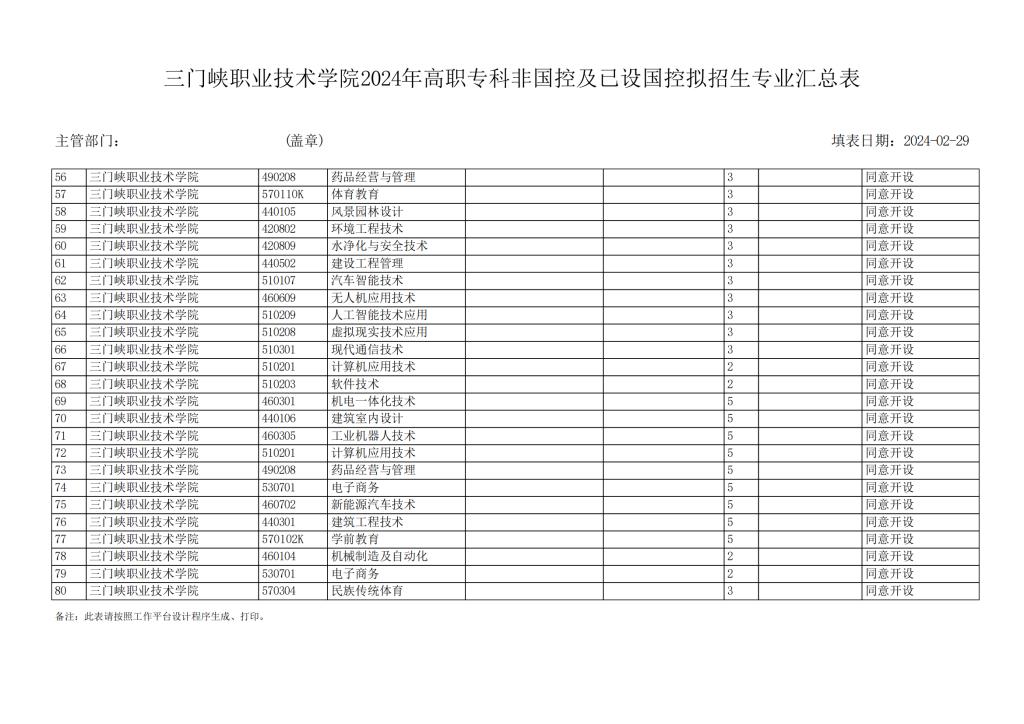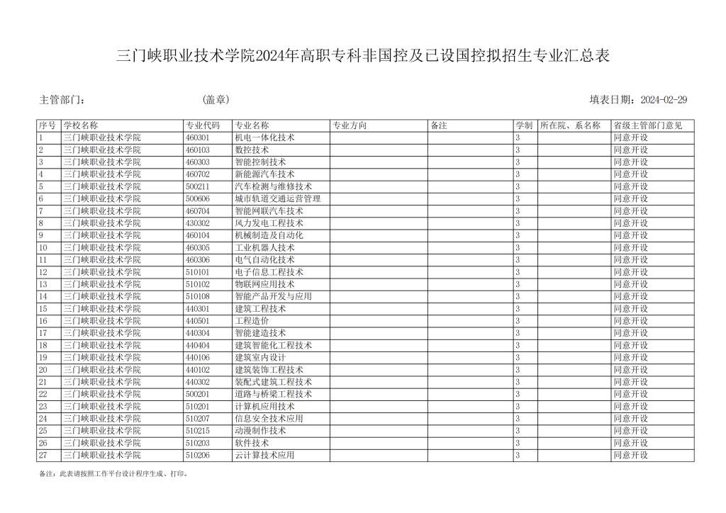 tyc522cc太阳成集团2024年高职专科非国控及已设国控拟招生专业汇总表
