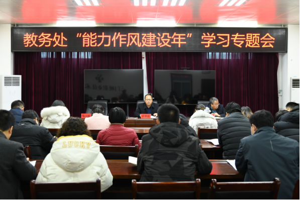 2月16日上午,教务处在天鹅湖校区6号楼荣誉室召开“能力作风建设年”学习专题会。党委委员、副院长黄世谋出席会议并讲话。各院部教学管理秘书及教务处全体人员参加会议。会议由教务处负责人马建明主持。