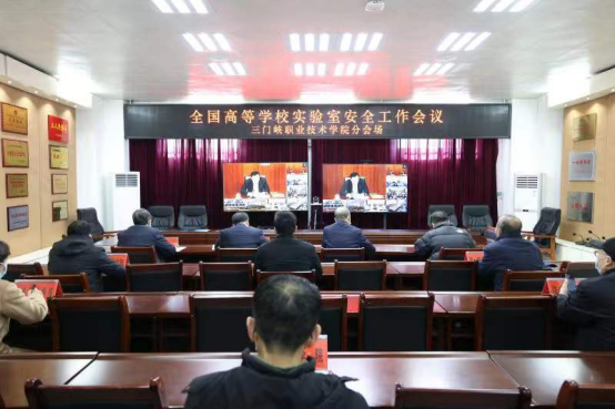 2月25日下午,教育部组织召开全国高等学校实验室安全工作视频会议。河南省设19个分会场,三门峡市分会场设在我院。三门峡社会管理职业学院党委委员刘赞民、教务处副处长申菲,我院党委委员、副院长黄世谋,教务处负责人马建明和各院部院长(主任)及教务处有关人员在荣誉室集中参加线上会议。