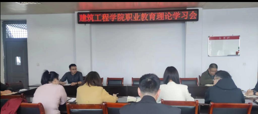 建筑工程学院于3月6日召开了职业教育理论集中学习研讨会。建筑工程学院教学副院长席仁义、各教研室主任、参加会议。会议由教学科张毅鹏主持。