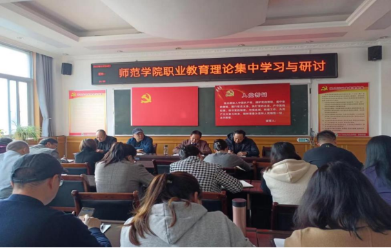 会前,各教研室组织本教研室各专兼职教师开展职业教育相关政策和理论的集中学习和研讨活动。会上,教学科田云飞带领大家再次集中学习了相关职业教育文件精神。