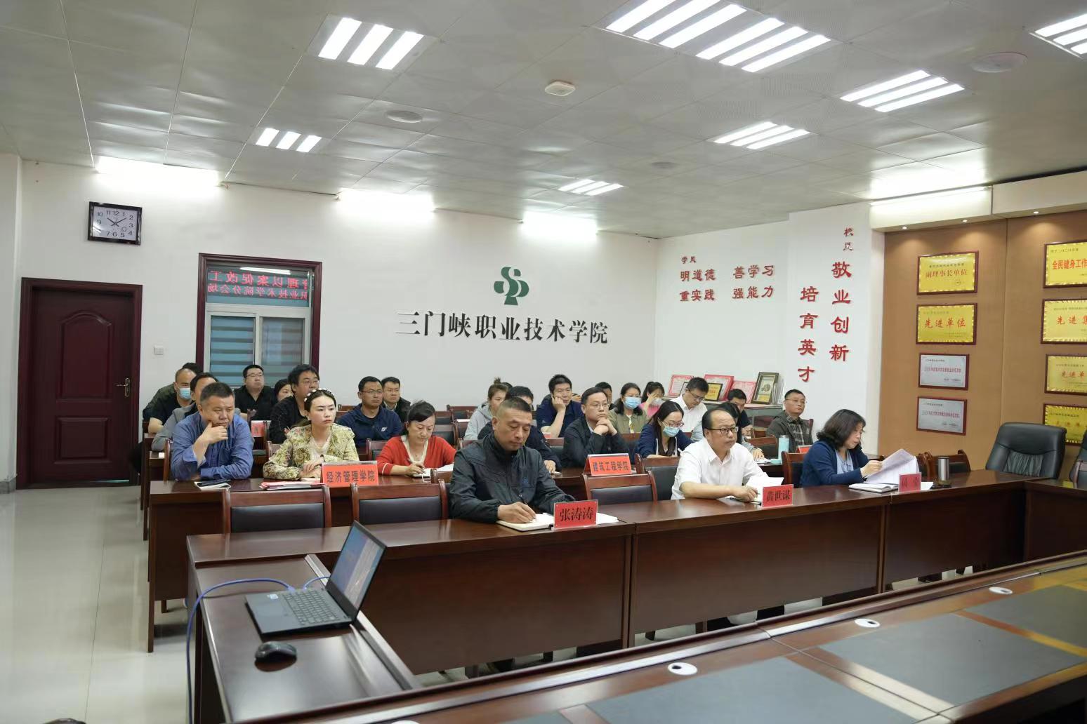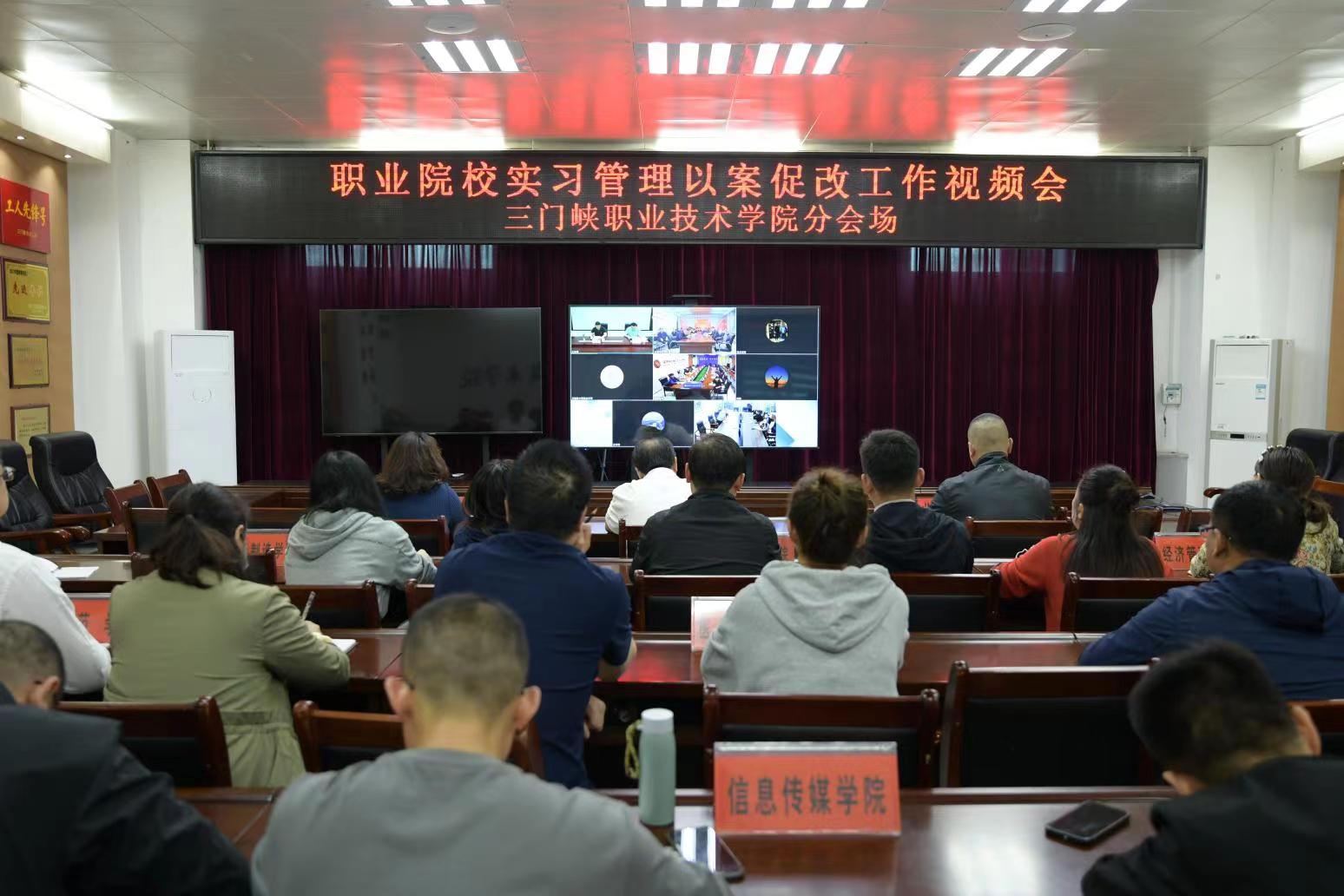 5月26日上午,我院在天鹅湖校区荣誉室设分会场参加河南省职业院校实习管理以案促改工作视频会。党委委员、副院长长黄世谋、学生处张涛涛,各院部主管实习副院长、学生科科长、实习管理员及教务处、招生就业办公室有关人员在荣誉室集中参会,各院部实习指导教师和学生辅导员参加线上会议。