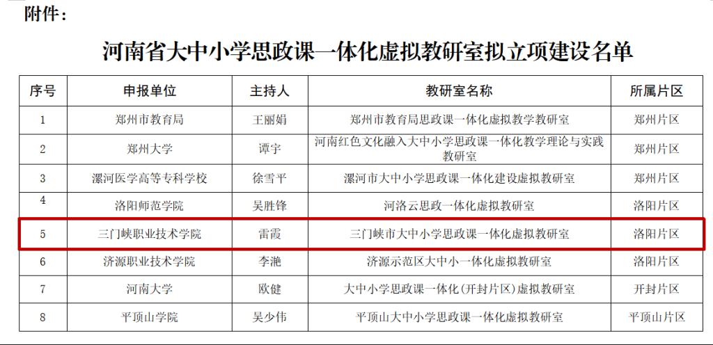 5月31日,河南省教育厅发布“关于河南省大中小学思政课一体化虚拟教研室拟立项建设名单的公示”,我院雷霞老师主持申报的“三门峡市大中小学思政课一体化虚拟教研室”获批立项。