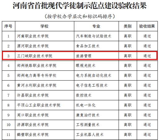 近日,根据河南省教育厅办公室《关于公布河南省首批现代学徒制示范点建设验收结果的通知》(教办职成〔2023〕469号)文件,我校旅游管理专业顺利通过验收。