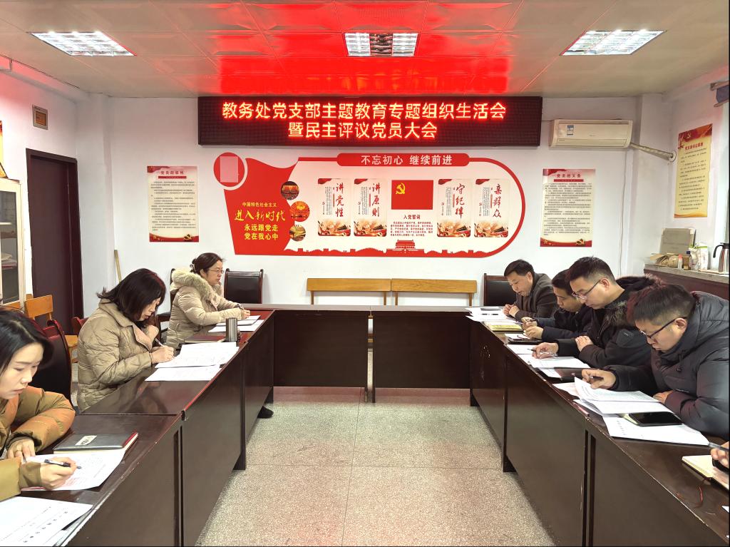1月23日上午,教务处党支部召开了主题教育专题组织生活会暨民主评议党员大会。会议由党支部副书记刘丰年同志主持。全体党员参加会议。