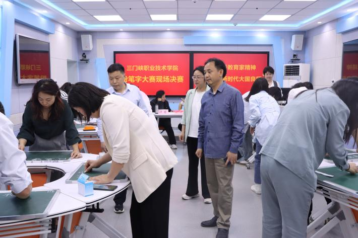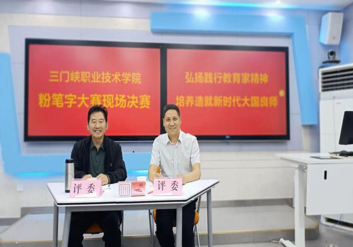 为扬师德风,塑师德型,铸师德魂,4月25日,我校以“弘扬践行教育家精神”为主题的教师粉笔字大赛现场决赛在天鹅湖校区智慧教室顺利举行。本次决赛特邀河南省书法家协会会员王延龙、三门峡市书法家协会会员张代平担任评委,部分专兼职教师现场观摩。