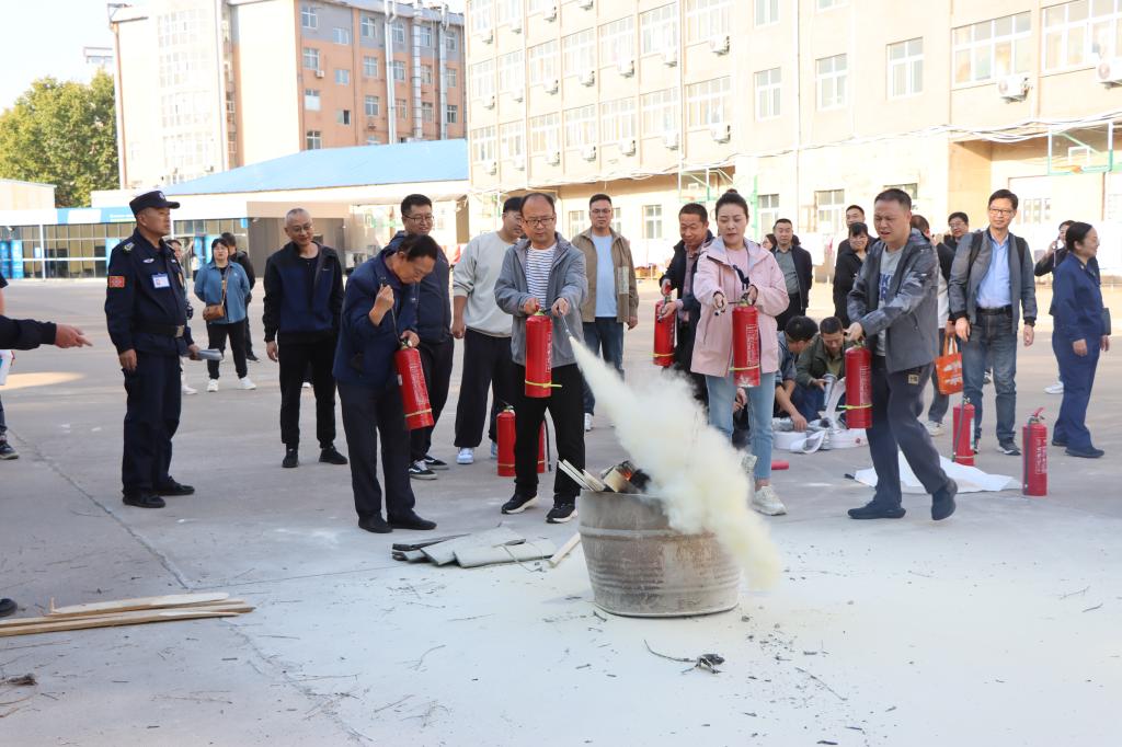 培训结束后,全体人员前往操场开展消防器材演练。参训人员在薛婷婷的全程专业指导下,按照“提、拔、瞄、压”灭火步骤,精准地扑灭了火焰。大家在看中学,学中练,零距离感受了火灾“扑救”过程,在实际参与过程中掌握了灭火器和消防栓等消防器材的使用方法,提高了消防安全意识和应急处置能力。