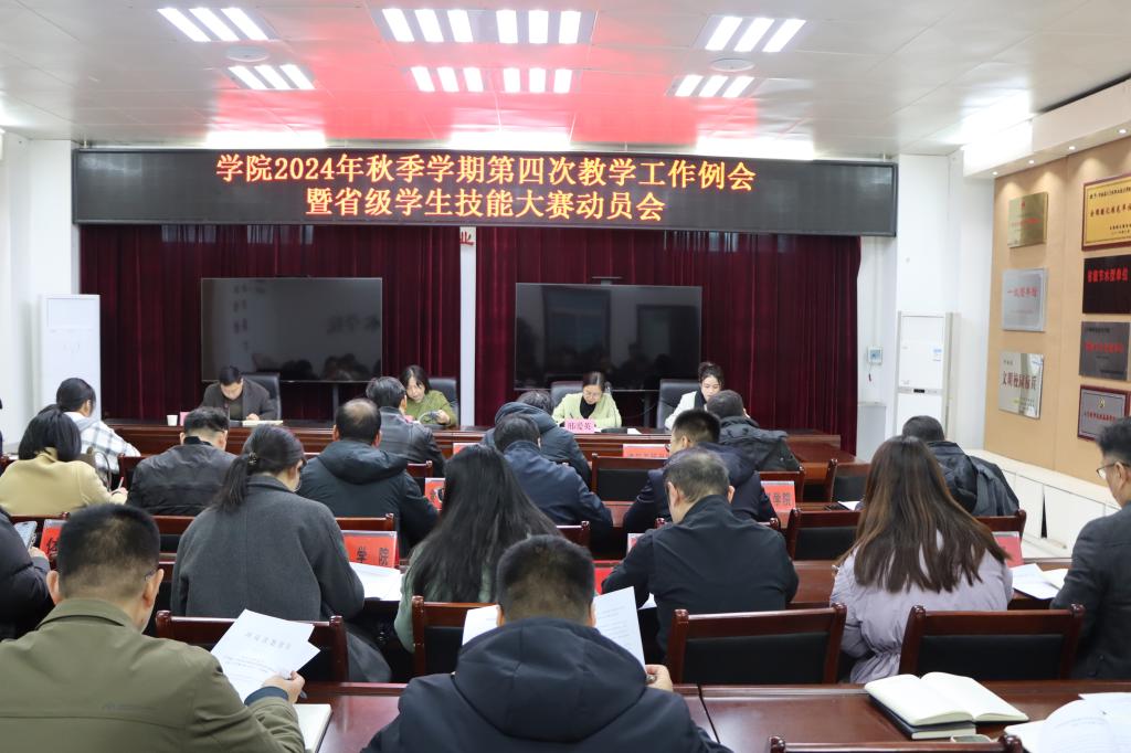 11月18日上午,学院在天鹅湖校区6号楼荣誉室召开2024年秋季学期第四次教学工作例会暨省级学生技能大赛动员会。各院部教学副院长、教学管理秘书及教务处全体人员参加了会议。会议由教务处刘丰年主持。