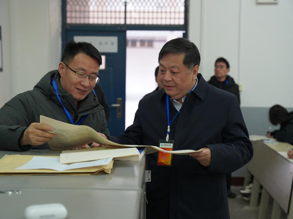 学院2024-2025学年第一学期期末考试于1月8日至9日进行。为进一步加强考试组织管理,强化教学质量监督,1月8日,党委副书记、院长颉潭成,深入学校各考场进行期末考试巡查工作。学生处负责人及教务处相关工作人员陪同参加。