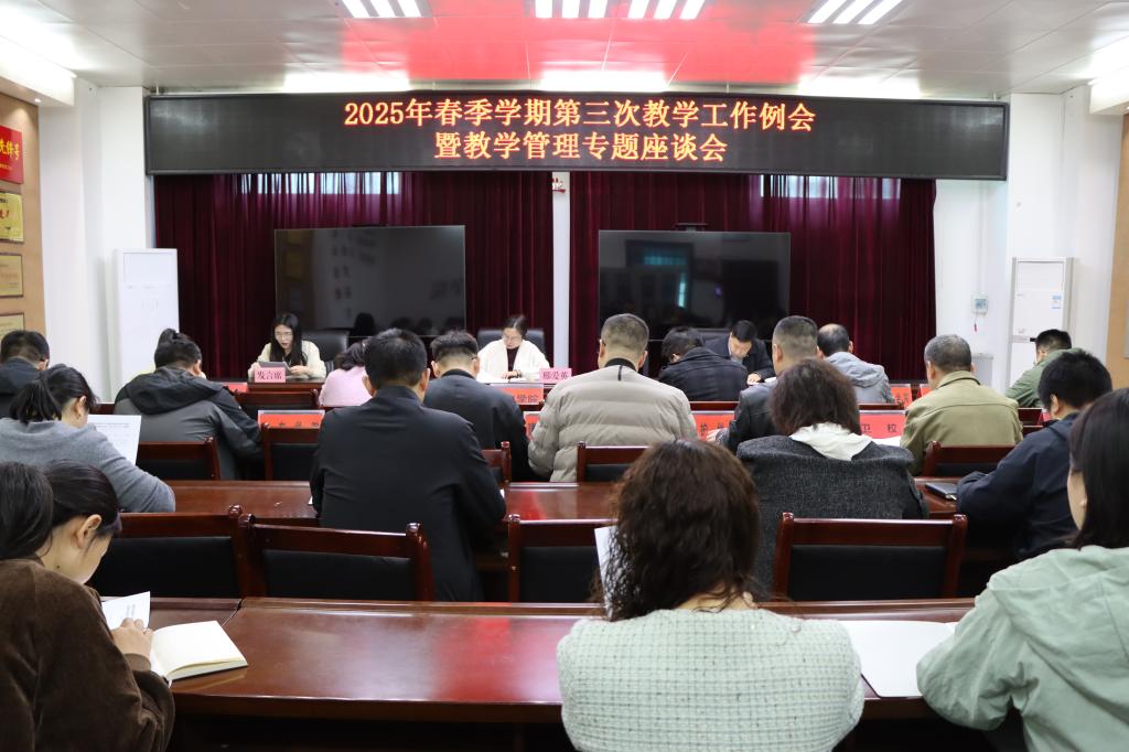会议领学了《教育部 财政部关于实施中国特色高水平高职学校和专业建设计划(2025—2029年)的通知》(教职成〔2025〕1号)文件精神。教务处张金龙、罗伟分别就期中学生评教、往届毕业生重修考试、常规教学检查,实习管理、实验实训室建设、1+x证书申报等工作进行了安排。教务处邢爱英对本学期省级规划教材建设、省级专业资源库建设、24本校本教材建设等教学质量工程项目,以及强化教学质量督查、新学期教材征订等常规教学工作进行了再强调。