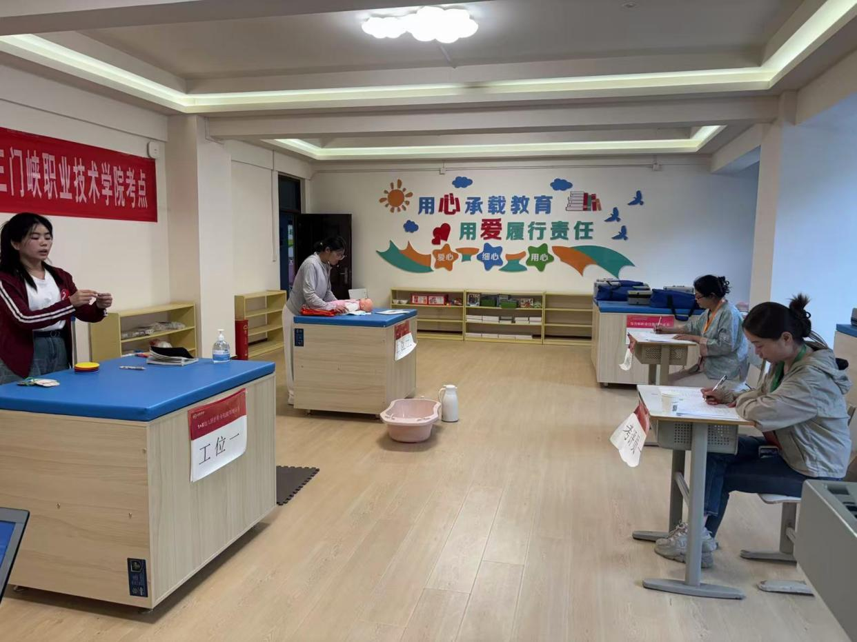 为深入贯彻落实教育部等四部门联合印发的《关于在院校实施“学历证书+若干职业技能等级证书”制度试点方案》文件精神,深化职业教育改革,提升专业学生的综合素质,夯实学生可持续发展能力,培养更多技术技能精湛、理论知识厚实的高素质人才,5月17日,学院成功组织了“1+X”幼儿照护等级证书考试。本次考试共121人报名,其中中级117人,考试对象为2023级学前教育、早期教育专业学生;高级4人,考试对象为校内教师。考试分为理论考试(机考)和实操考试两部分,分别在天鹅湖校区6号教学楼机房和10号教学楼实训室进行。