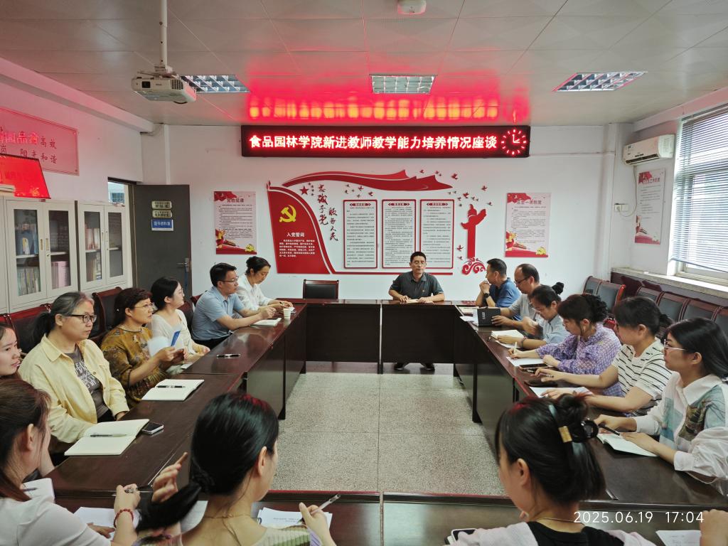 6月19日下午,食品园林学院在天鹅湖校区2408会议室召开新进教师教学能力培养座谈会。会议由院长辛峰主持,2024年入职的10名新进教师、全体指导老师和院部教学管理人员参加了此次座谈会。
