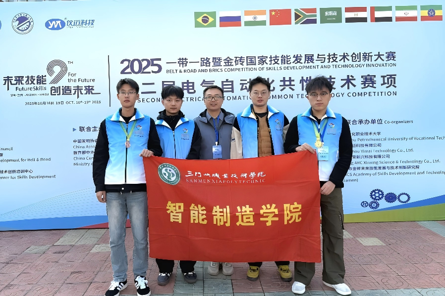 10月17日至20日,2025一带一路暨金砖国家技能发展与技术创新大赛“第二届电气自动化共性技术赛项”在兰州石化职业技术大学成功举办。我院智能制造学院师生代表与来自全国120支学生队伍、57支教师队伍同台竞技,凭借扎实的专业功底与出色的临场发挥脱颖而出,一举斩获1金1银1铜,同时收获多项荣誉,尽显我院教师扎实的专业能力与技能人才培养实力。