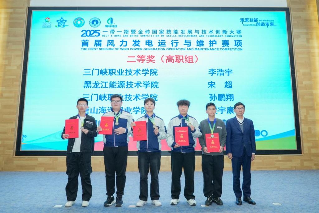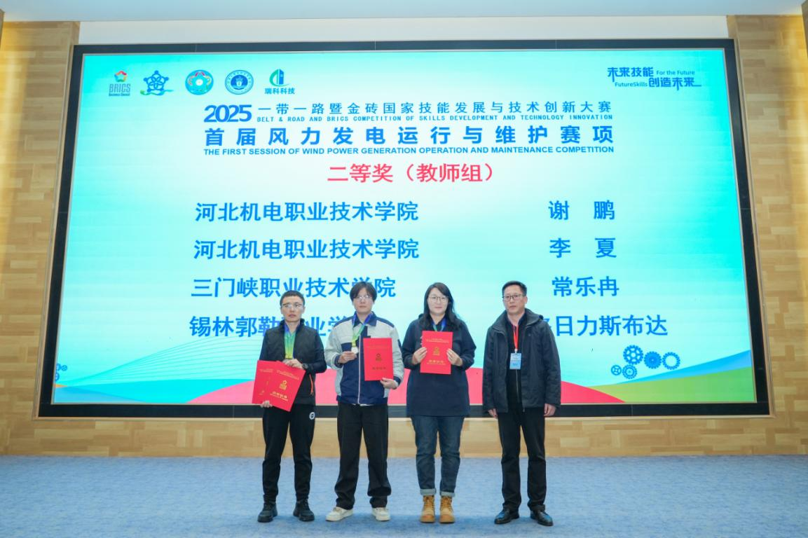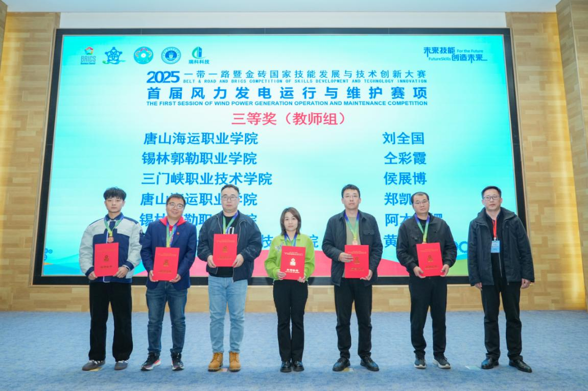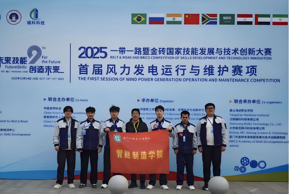 2025年10月23日至26日,2025一带一路暨金砖国家技能发展与技术创新大赛之首届风力发电运行与维护赛项决赛在唐山海运职业学院成功举办。智能制造学院师生代表队凭借扎实的专业功底和出色的现场表现,从来自全国的40余支参赛队伍中脱颖而出,共斩获1金、4银、1铜的优异成绩。彰显了学院在新能源领域人才培养的显著成效,更展现了“以赛促教、以赛促学”育人理念的丰硕成果。